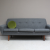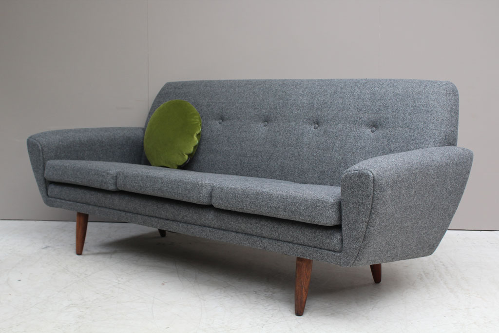 Designed by Georg Thams for Vejen Polstermøbelfabrik, an extremely well regarded midcentury furniture maker. The clean angled design is softened by the curve of the arm profile and the turned rosewood legs, these frames are a joy to restore.