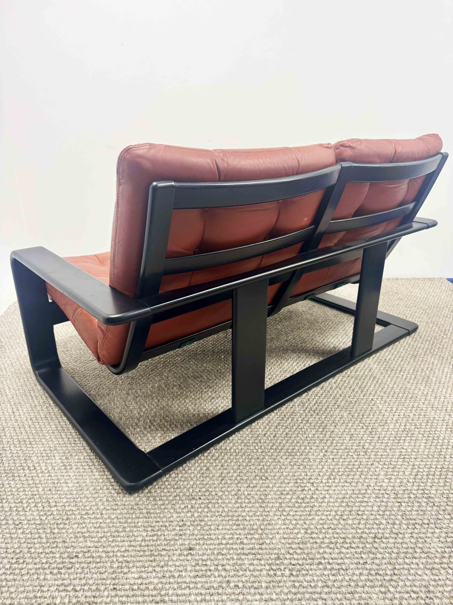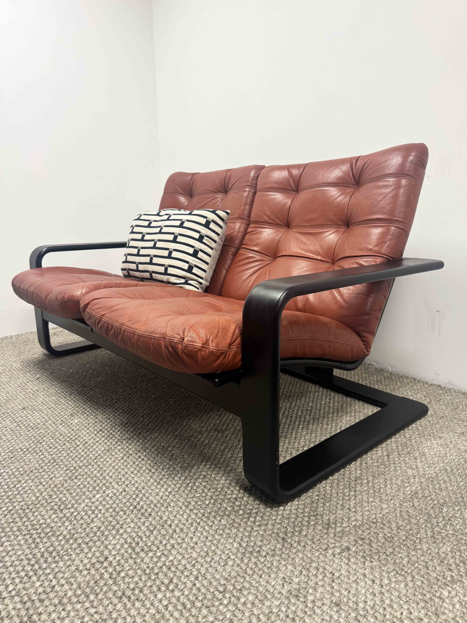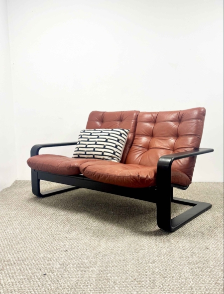 Romi is a 70s two seater with a fabulous ebonised frame designed by Lystolet for Swedish furniture maker Coda.