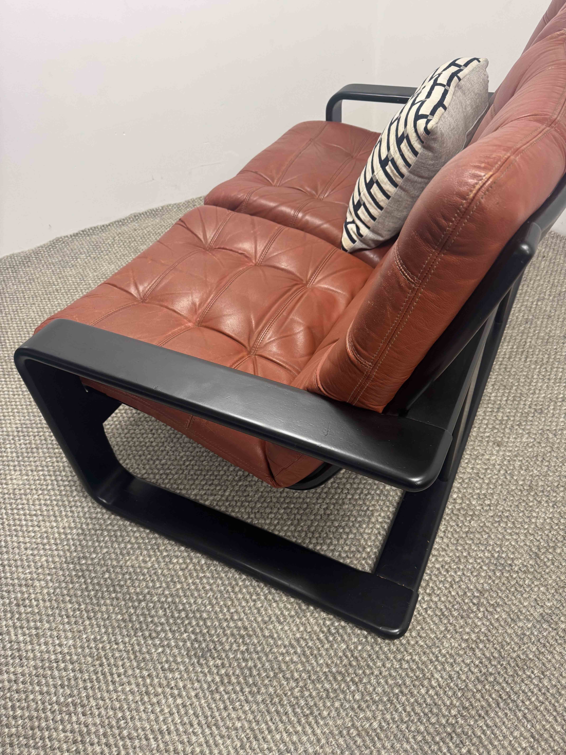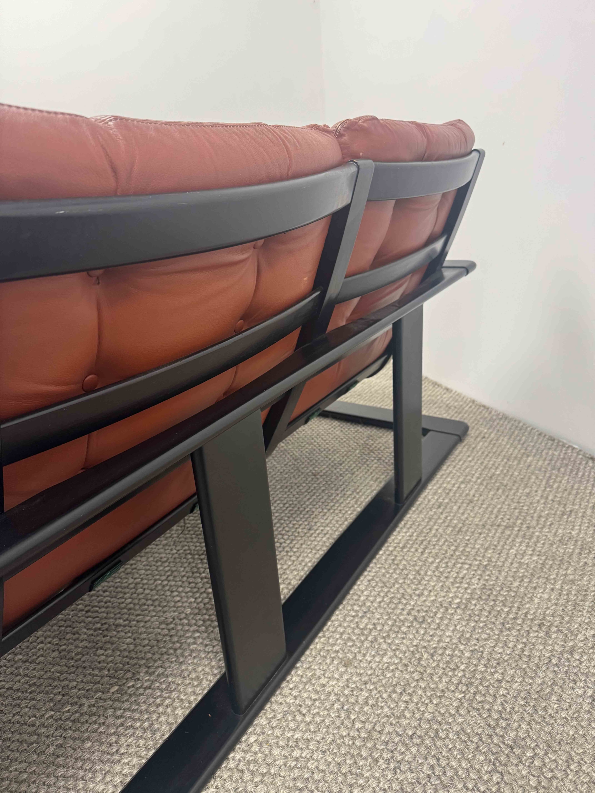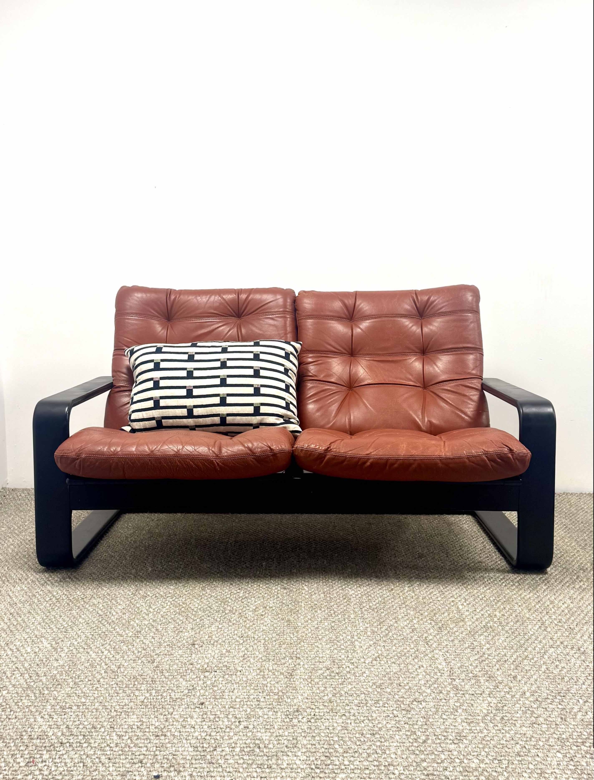 Romi is a 70s two seater with a fabulous ebonised frame designed by Lystolet for Swedish furniture maker Coda.