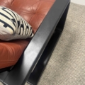 The sofa is available ‘sold as seen’ in its current vintage condition which is very good. The frame is sturdy and solid and the tan  leather upholstery is in good condition. There is some superficial wear but this just adds to the lived in feel and they have a lovely patina. The original webbing  has been tightened up and the sofa is a nice comfy sit.